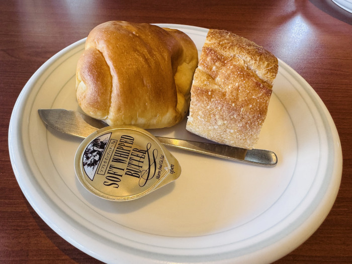 パンにして正解!ふわふわで甘みのあるバターロールとハードなフランスパン。どちらもペロリです。