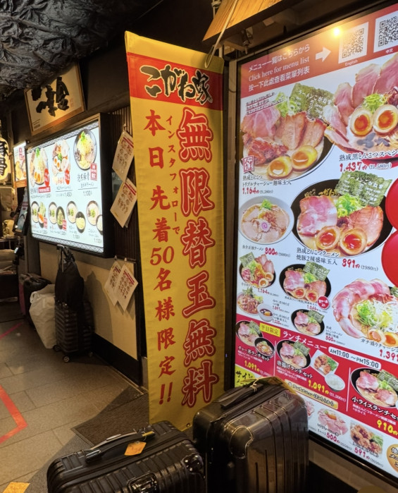 骨感MAXの熟成濃厚豚骨ラーメンがウリの同店、なんとインスタをフォローすると、「無限替玉無料サービス」という替玉が何度でも無料になる特典があるのです!