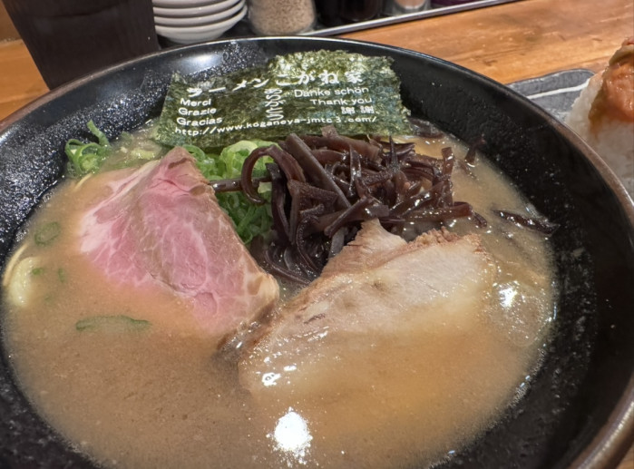 そしてこの「豚骨ラーメン」。2種のチャーシューが入っているのもうれしいですが、なんといっても「呼び戻し製法」による濃厚で深みのある味わいで、一口目も最後の一口までも変わらずおいしくいただけました。