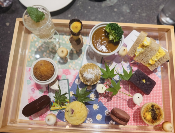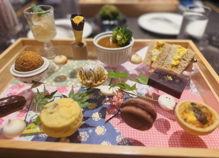 ホテル内1階の「TRATTORIA M KYOTO」では、季節ごとにテーマが変わるアフタヌーンティーを提供しており、秋はハロウィンをモチーフにした華やかなセットが人気です。京都×イタリアンの融合が楽しめる、五感で味わうティータイムです。
