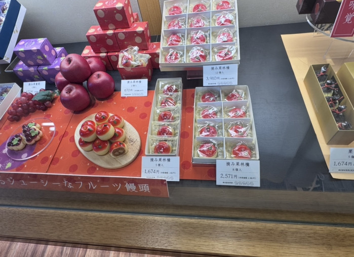 フルーツ饅頭として、この日は林檎や葡萄も並んでいて、ちょっと斬新で食べてみたくなる味ですよね。