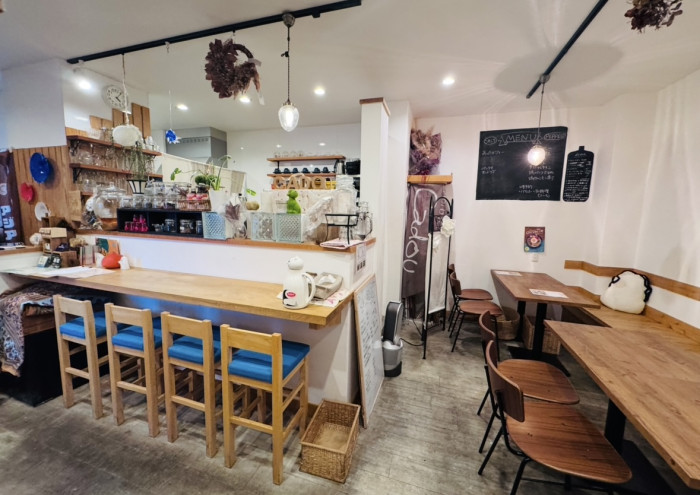 カウンター4席+テーブル12席のこじんまりとした店内は、真っ白な漆喰の壁とナチュラルな雰囲気が居心地のいい空間。