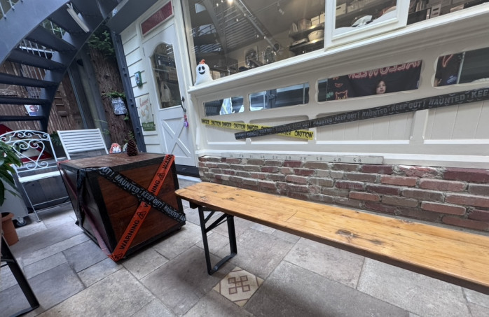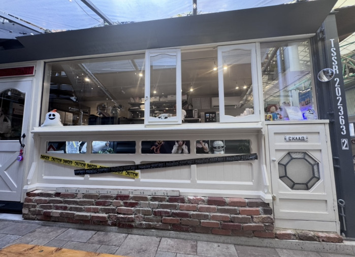商店街の中にひときわおしゃれなスタンドは、オーダーしてテイクアウトで食べ歩きはもちろん、店内でも飲食可能。