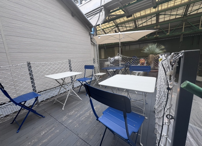 スタンド横のベンチでもいいですが、階段上がって2階でも寛ぎスペースがあるのです。