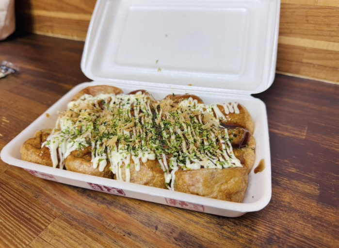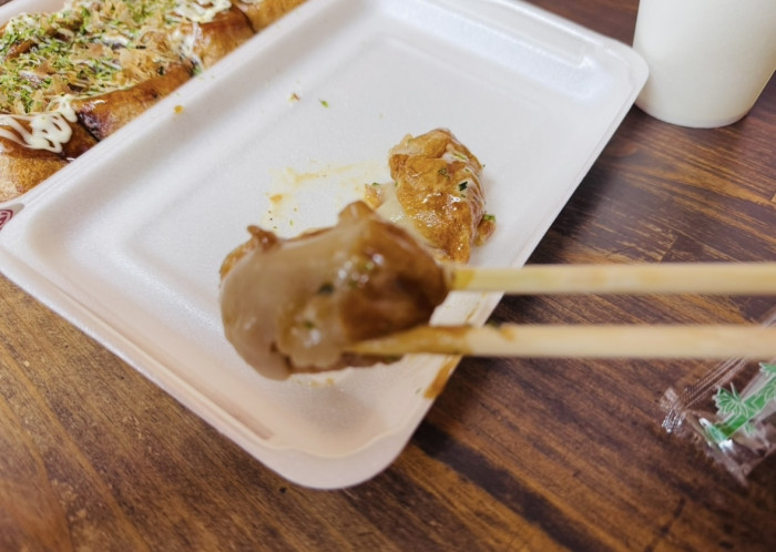 この日は小腹が空いたので、購入したたこ焼きを店内でいただきました。