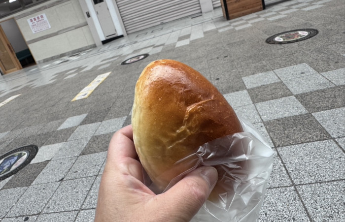 この日買ったパンは、商店街に何か所か設置されているベンチで早速いただきました。