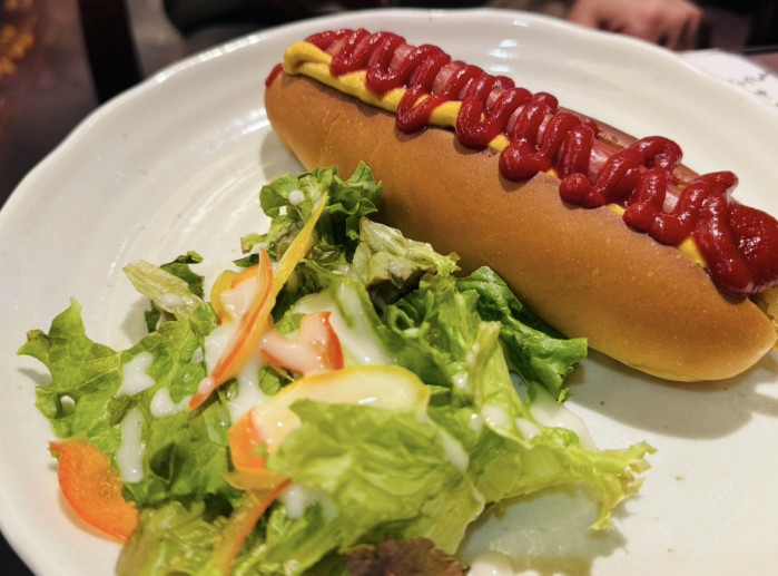 ホットドックもボリューミー。小腹が空いたときにしてはお腹いっぱいになります。