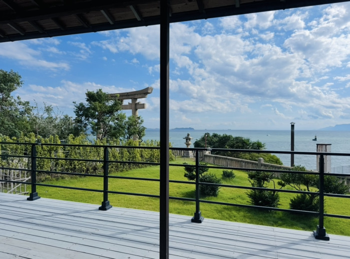 兵庫県赤穂市御崎、伊和都比売(いわつひめ)神社境内にあるカフェ「AMAMI TERRACE(アマミテラス)」は、絶景カフェ&ワークショップ施設で、赤穂化成が手がける“塩”をテーマにしたランチやスイーツが楽しめます。