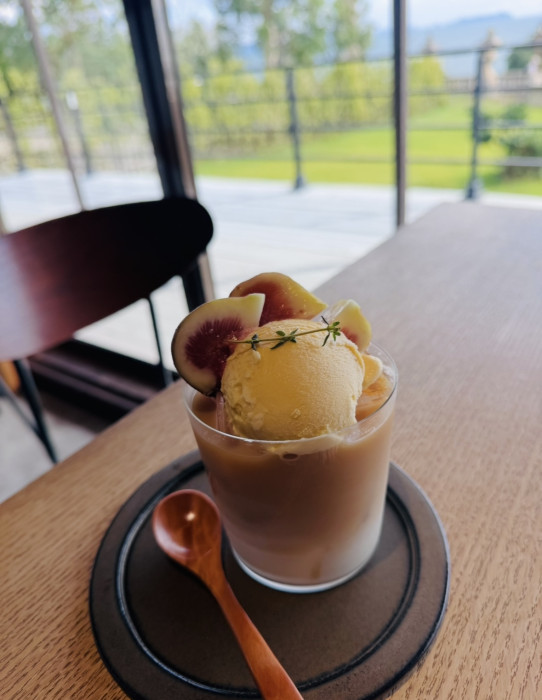 イチジクの酸味と甘み、バニラアイスが途中で溶けてラテに混ざってもおいしくて、一度で三回ほどの味を楽しむことが出来ました。