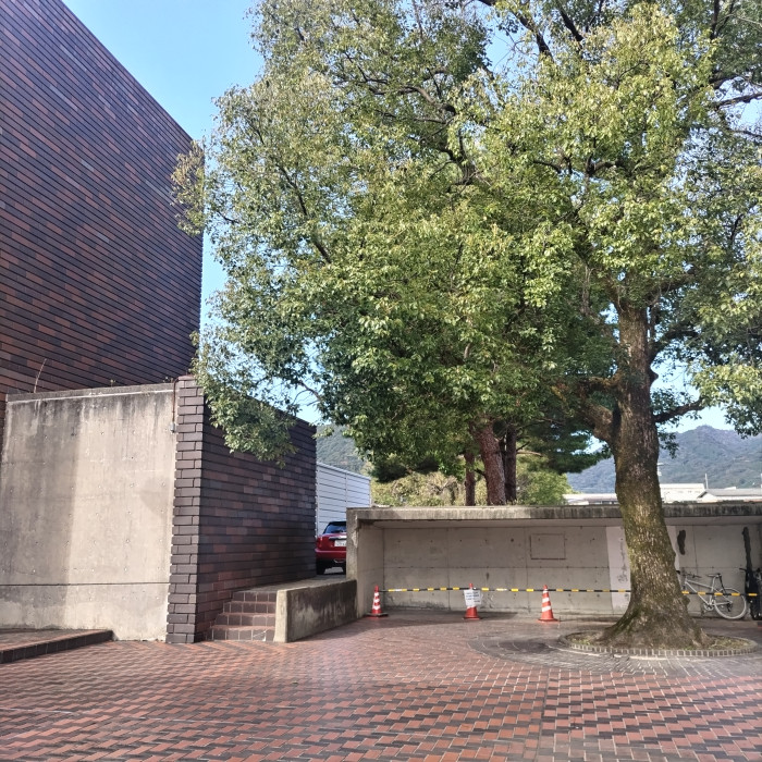 駐輪場に自転車をとめて細い入り口から入ることが多かったです。大きな木がよい雰囲気です。表玄関の前には