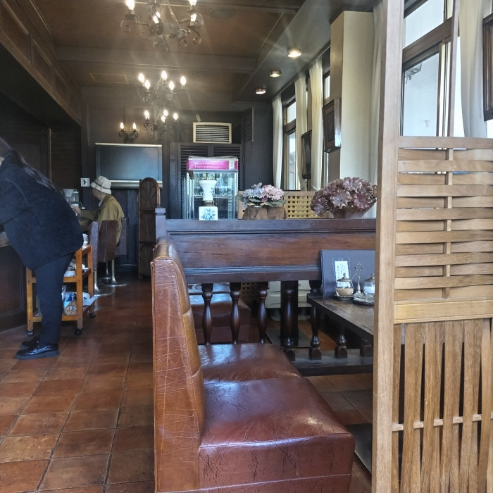 お昼時にお邪魔しました。古いシャンデリアや椅子などがいい雰囲気です。