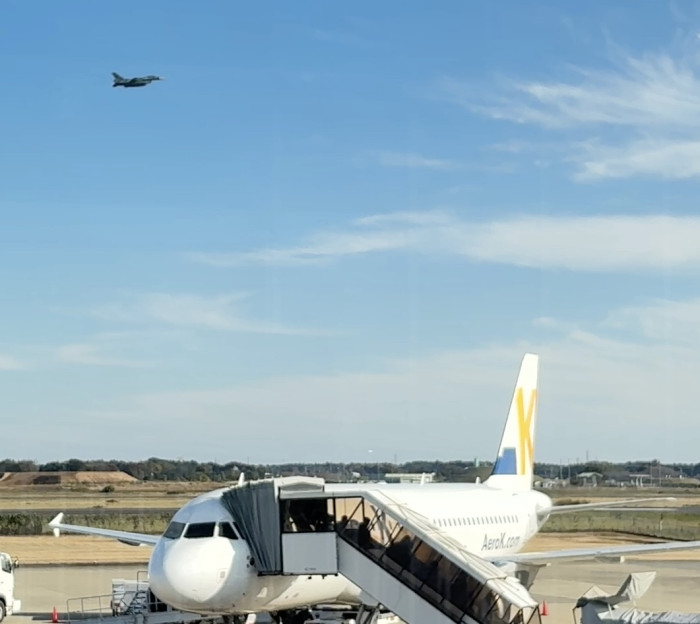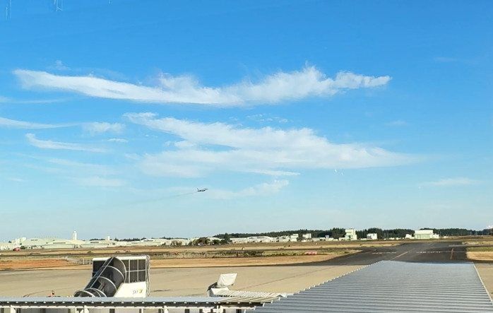今回は、たまたま、韓国の旅客機「エアロK」の離発着も見ることができたのですが、「エアロK」の着陸直前に自衛隊機が一気に飛び立ち、離陸直前に一気に着陸していました。