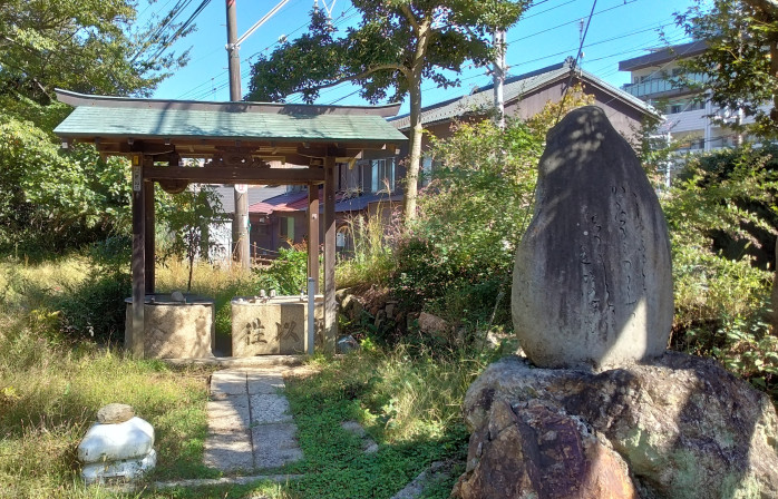 蝉丸神社は、京阪大谷駅近くにあるウナギ料理で有名な「かねよ」のすぐ前です。