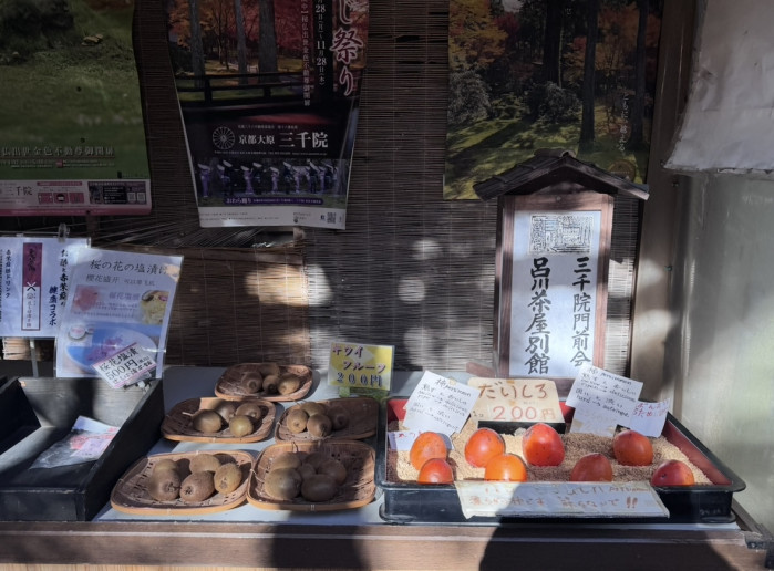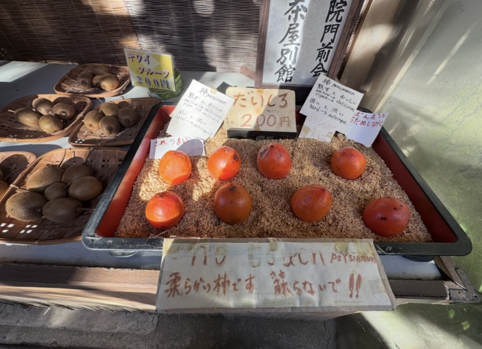 京都で古くから親しまれている、非常に甘くゼリー状にとろける果肉が特徴の柿「だいしろ」も1個200円で販売されていました。