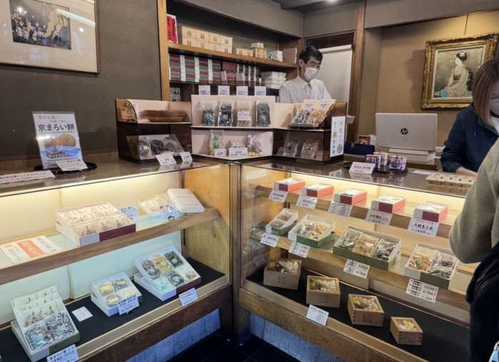 祇園南座の目の前にあるので、舞台観劇の前後に立ち寄る人も多いのだとか。祝い菓子から季節の創作菓子まで揃っていて、「いつまでも健康で暮らせる贈り物」をテーマにした店構えがいいですよね。