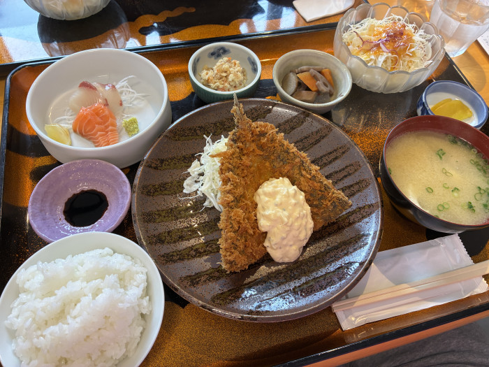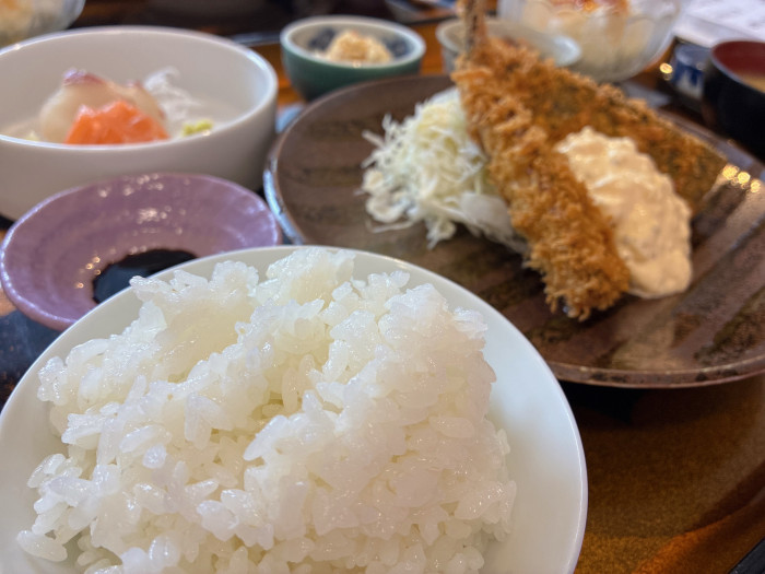 「はじめての方、まずはアジフライから!」というメッセージを添えられたメニューのは、他にも平日限定ランチや変わらぬ看板メニューなどが揃っています。筆者は「アジフライ定食」(1,200円)をチョイス。