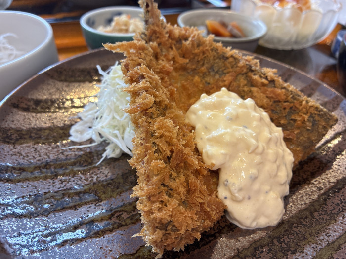 ふっくらと身の厚いアジが、ざくっと食感の良い衣に包まれています。お刺身でも提供できるほどの鮮度のアジをフライに。その贅沢さは、揚げてもなお味わえます♪