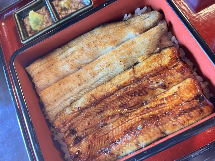 せっかくなので、白焼きと蒲焼きが合い盛りになったお重を注文しました。