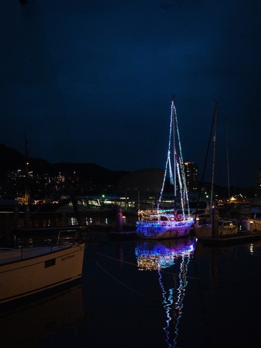 • 港のライトが水面に反射して、雰囲気が一気にロマンチックに