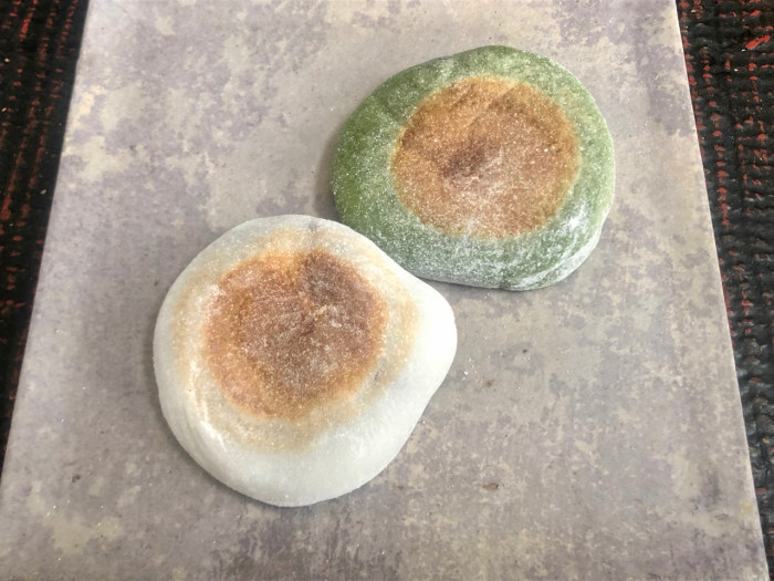 葵家やきもち総本舗は、江戸時代から続く「やきもち」で知られる名店。香ばしいもち米とすっきりしたこし餡を合わせた素朴な味わいは、参拝客や地元の人々に長く愛されています。この老舗が秋だけ作る特別なお菓子が、徳島県産「鳴門金時」を使ったいもおはぎです。