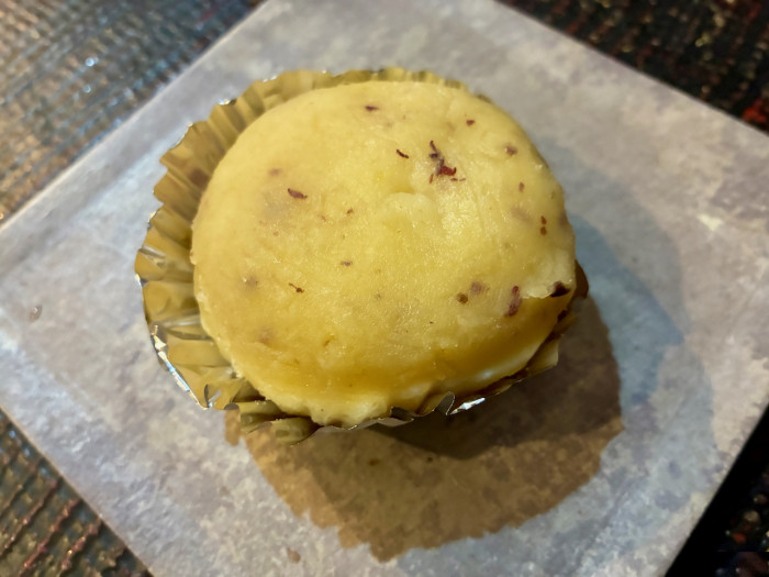 いもあんは、さつまいもと白餡を合わせた滑らかな仕上がりで、噛むほどに上品な甘さが広がります。中には塩気を少し効かせた餅米が包まれており、甘さと塩味のバランスが絶妙。ひとつがしっかり大きく、満足感のある食べ応えです。