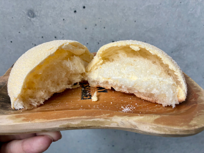 このメロンパンの魅力を引き立てているのが、ほのかに香るラム酒。甘みのあるやさしい香りがふんわりと余韻として残り、シンプルな味わいに奥行きを加えています。