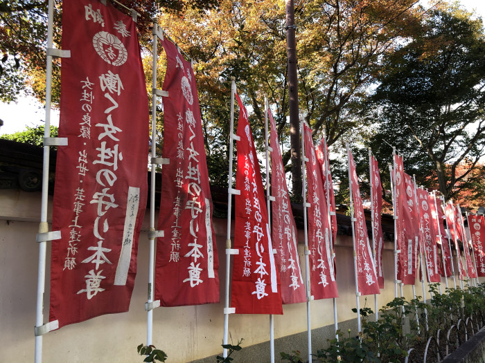 境内の周りには、「働く女性の守り本尊」という旗がたくさん立っていました。同聚院が働く女性の守り本尊となったきっかけこそ、モルガンお雪さんです。