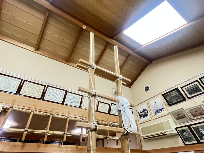 今回の会場は石引の石引消防会館でした。金沢の消防団では加賀鳶(梯子登り)を伝統としており、室内で練習できるように梯子が設置してありました。