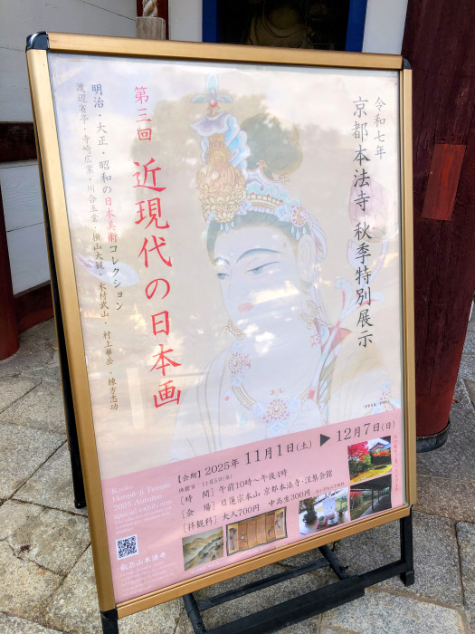 歴史あるお茶室が並ぶエリアにある本法寺は、本阿弥光悦や長谷川等伯といった芸術家ゆかりのお寺です。その関係からか、現在「近現代の日本画」展が行われています。