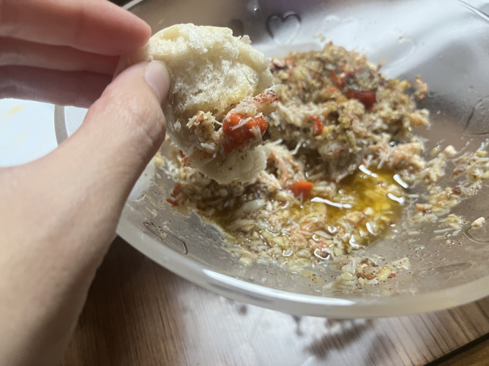 内子の濃厚なコクがオイルに溶け出し、外子のプチプチした食感がアクセントになって、パンを浸す手が止まりません。