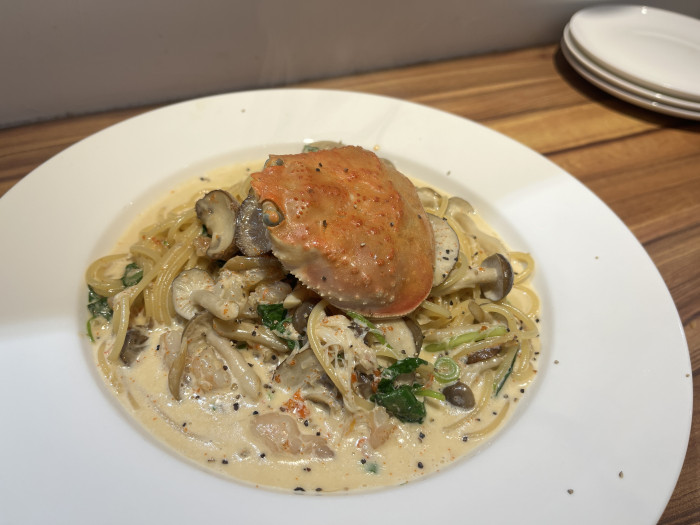 カニ味噌の深みと香箱の身の甘さがクリームソースにしっかり溶け込んでいて、贅沢感がすごい…!