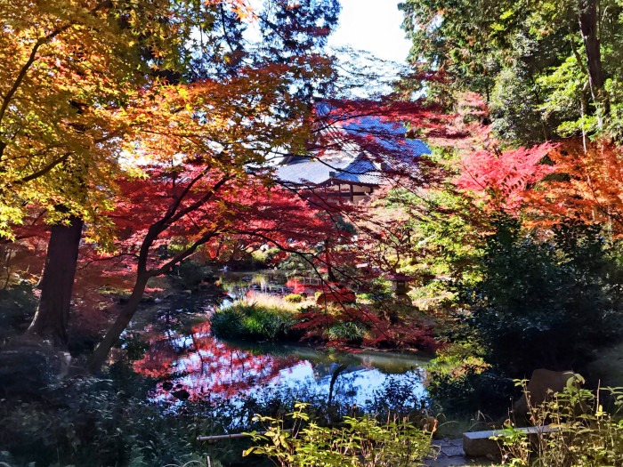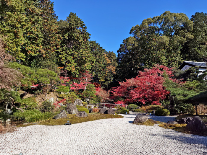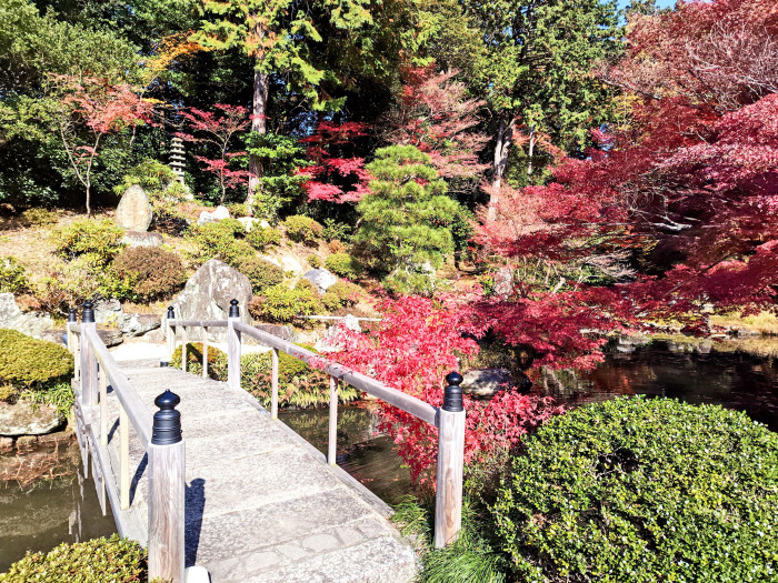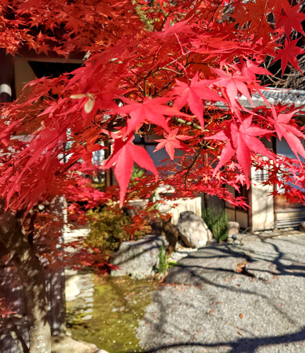 小径を進むとまた異なった風情が楽しめる紅葉の景色が。