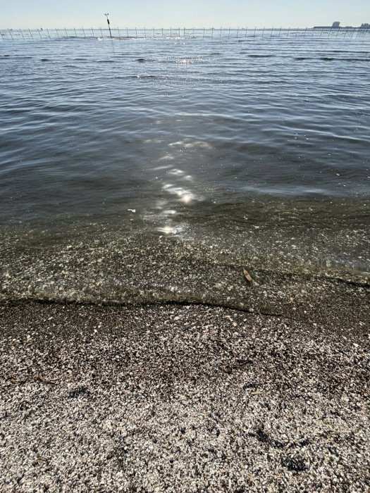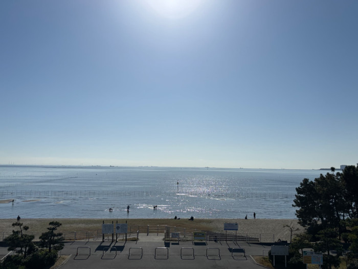 そしてなんと言っても魅力的なのは三番瀬(海)です。水は透き通り、砂浜もさらさら。色々な生物が生息しています。遠くには大きな野鳥(おそらくアオサギ)が見え、近くではこども達がヤドカリを発見していました。