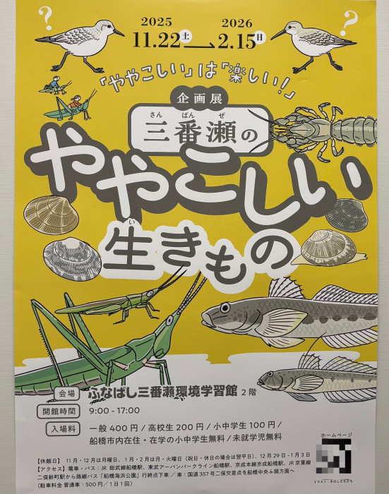 また園内には環境学習館があり、「三番瀬のややこしい生きもの」という企画展が2026年2月15日まで催されているそうです。今回行くことが出来なかったので、期間内にまた来たいです。