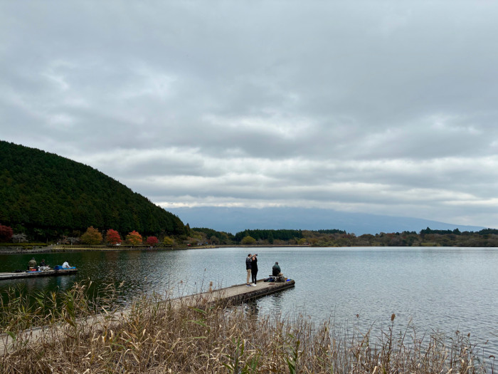 湖畔に立つと、視界いっぱいに広がる雄大な富士山が正面に見え、晴れた日にはその堂々たる姿をじっくり堪能できます。