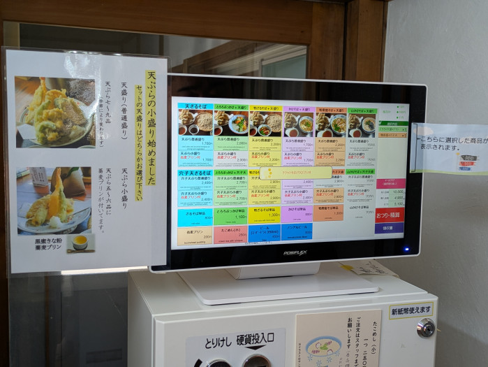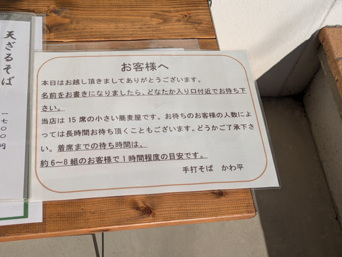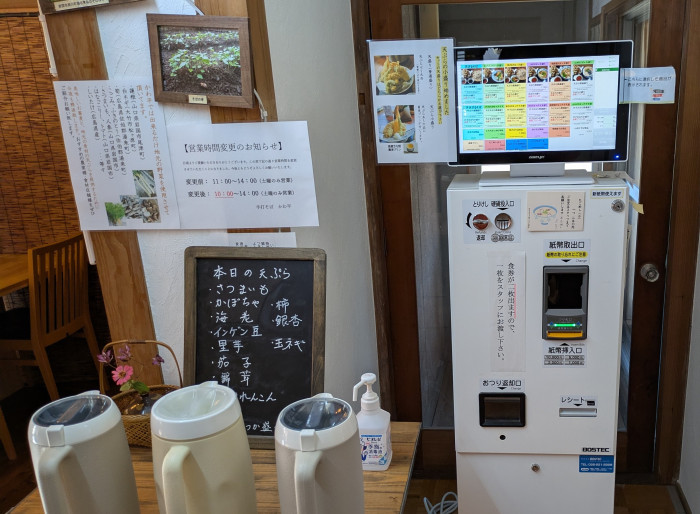 店内はこぢんまりとして温かみがあり、窓からは山の景色が望めます。列に並んで待った時間も、席に着いた瞬間にはすべて忘れてしまうほどの満足感と感動があります。週に一度しか味わえない貴重な蕎麦天ぷらだからこそ、早めの訪問が確実です。