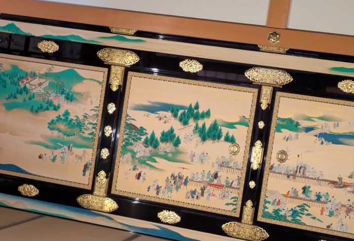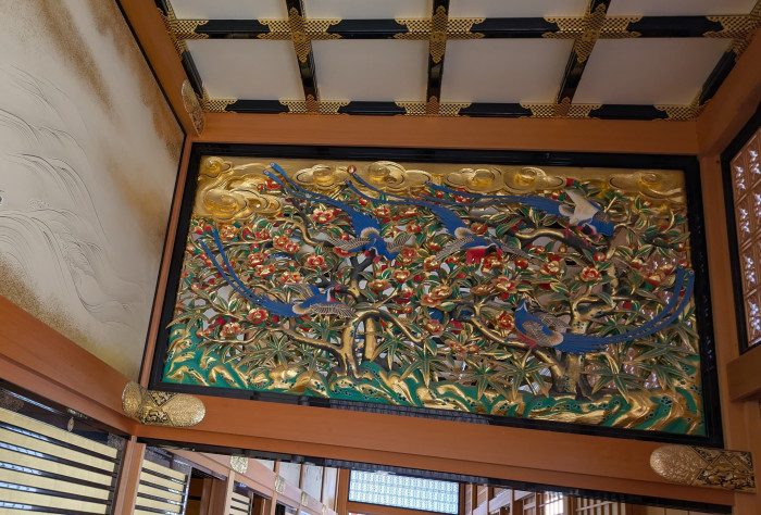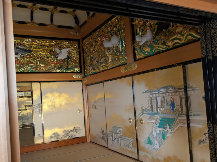 室内は、狩野派による豪華な障壁画(「雪中梅竹鳥図」など)や彫刻欄間、飾り金具で飾られ、贅を尽くした黄金の空間をあてがわれることに。
