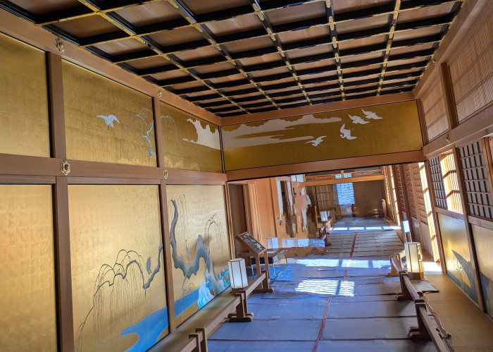 将軍や藩主が上洛殿に向かう際に利用した格式高い廊下で、名前の通り廊下の障壁画には鷺と柳が描かれており、鷺は古代の信仰と深く結びつき、神の使いとされています。