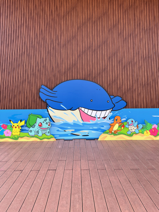 現在ライカム内にはピカチュウやたくさんのポケモンと出会いながらホエルオーを探す「ポケモンホエルオーウォッチング」の装飾が行われています。