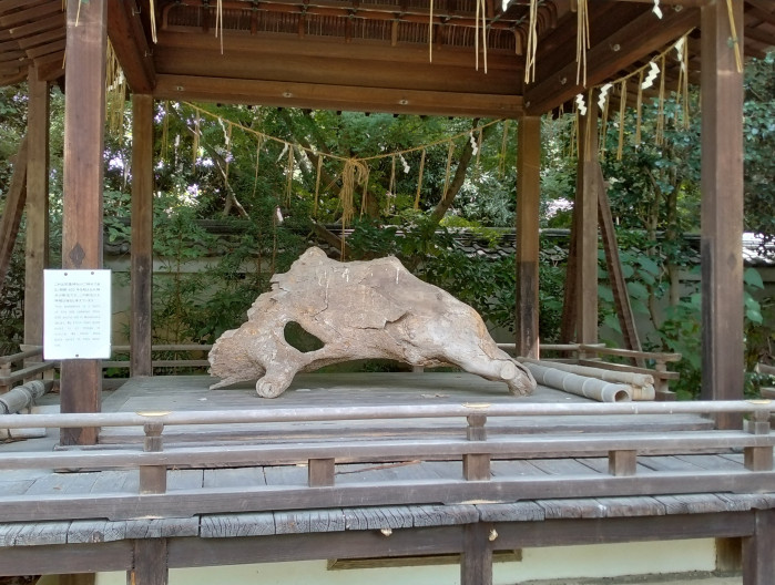 その木の1つ、樹齢600年の御神木の樹皮が飾られていました。