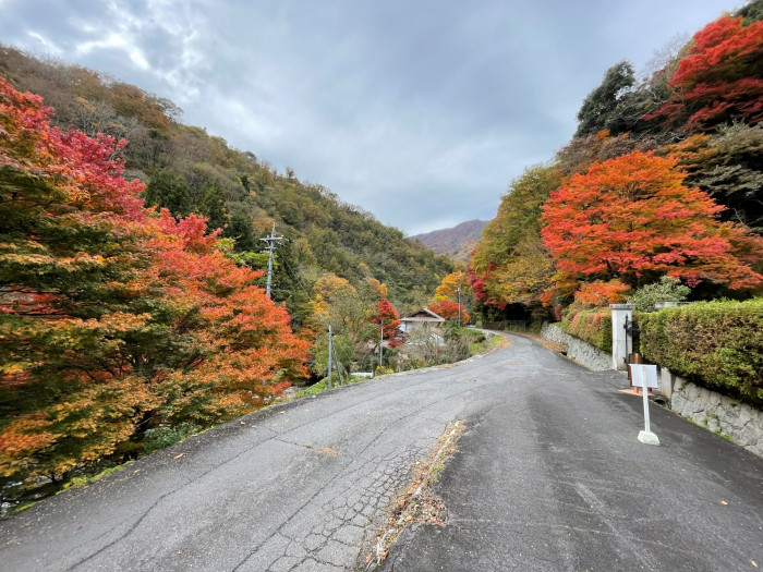 屋敷のすぐわきを流れる渓流にかかる橋も紅葉で彩られていました。