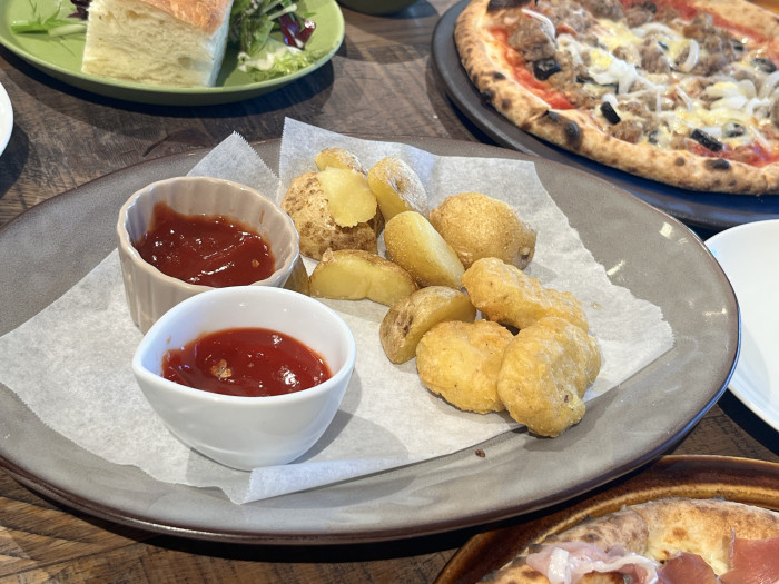 ひとつひとつの量が多いので、ピッツァはシェア前提のほうがいいかもしれません。(一人一枚だと腹ペコでもやや持て余すくらいのボリューム感でした)