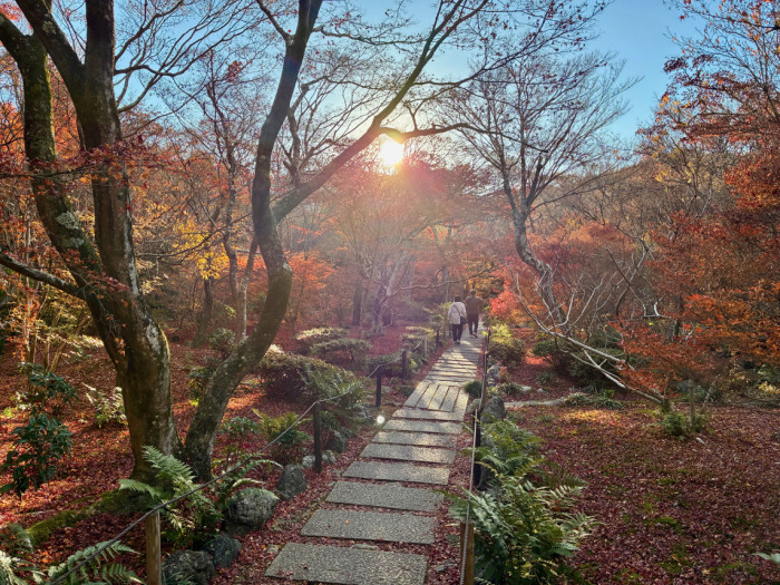 なかでも庭園いっぱいに広がる散紅葉は格別で、落ち葉が苔や石畳を染め上げる景色は、思わず足を止めたくなるほどの美しさです。