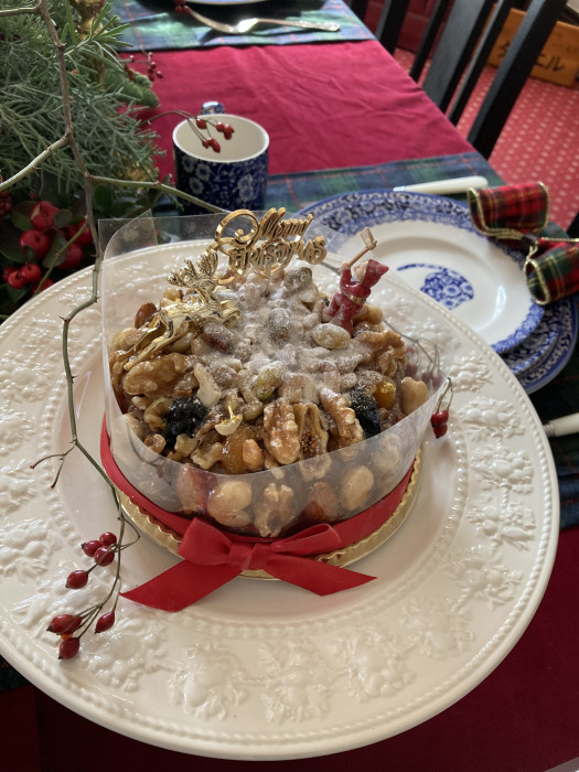 ナッツやドライフルーツがたっぷり入ったケーキの模型・・・