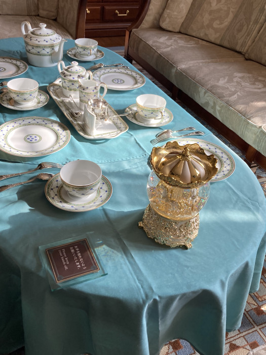ティーテーブルの上のスノードームも、メリーゴーラウンドです。