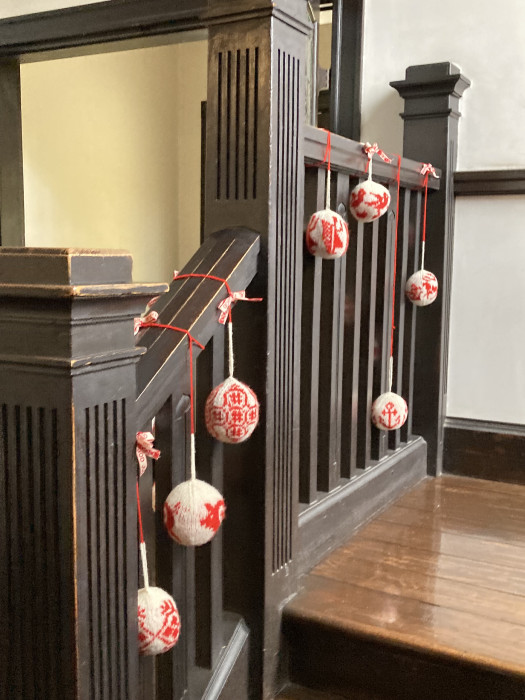 階段にもノルディック編みのオーナメントがコロコロと^^