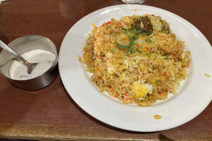 サラッとしたピリ辛炊き込みご飯+ギュッと身の詰まったマトンのコンビネーションが最高で、もうスプーンが止まりません。