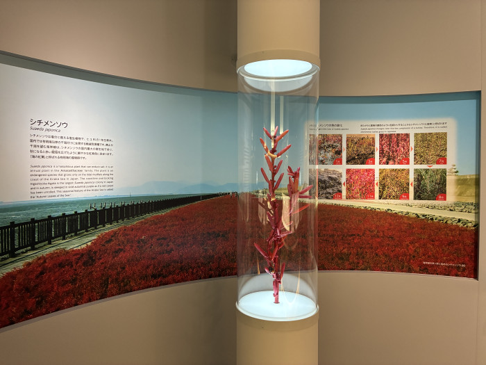 シチメンソウについて深堀したコーナー。季節で変化していく様子や、ここで見られるという希少価値の深さが伝わってきます。