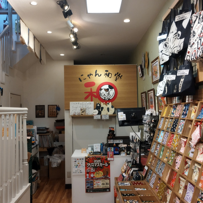 「にゃん和堂」と名前も最高で、かなりの数の猫グッズが所狭しと並んでいます。和ものってのが、私の心を揺さぶります(笑)
