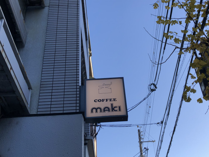 出町の桝形商店街近くに、「コーヒーハウス マキ(COFFEE HOUSE maki)」があります。コーヒーミルのかわいい看板が目印です。